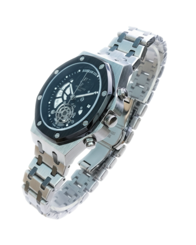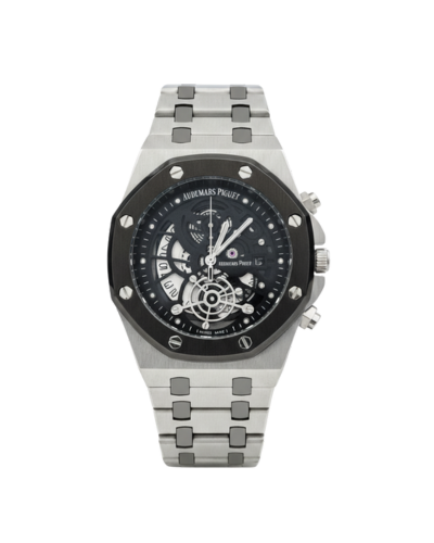 Experience the iconic allure of the Audemars Piguet Royal Oak, a symbol of horological innovation. This distinguished men’s watch features a striking black dial, complemented by a sophisticated two-tone design. With its impressive water resistance, convenient date display, and calendar dial, it seamlessly blends functionality with elegance. The Audemars Piguet Royal Oak is the perfect statement piece, embodying enduring luxury and exceptional craftsmanship.