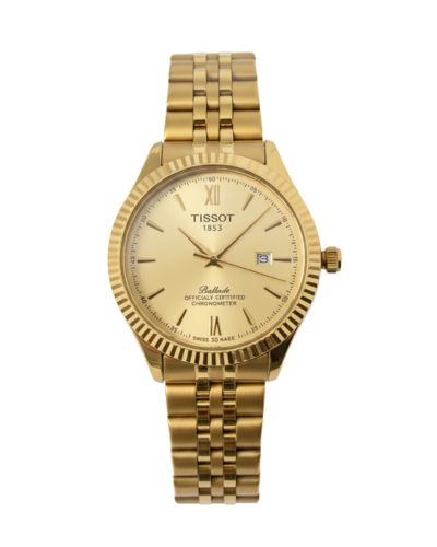 Experience the timeless elegance of the Tissot Ballade. This exquisite timepiece, featuring a captivating golden dial, is a testament to refined craftsmanship. Encased in durable stainless steel and powered by a precise quartz movement, it offers both style and reliability. With its impressive water resistance, the Tissot Ballade is designed for everyday adventures, making it the perfect companion for any occasion.